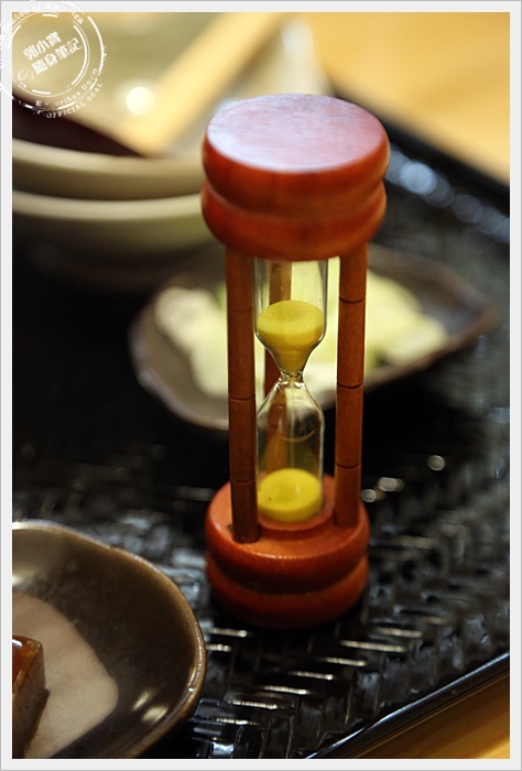 | 附上一個小沙漏,店員說沙漏漏完的時候就可以打開木蓋食用了,味道最是美味。 |