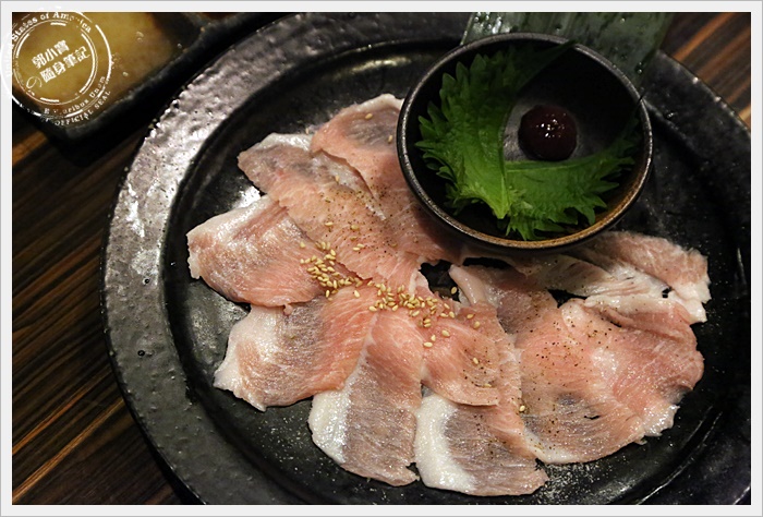 | 豬頸肉切的有點薄,但是吃起來那脆口彈牙的咬勁依舊,讓人有欲罷不能的衝動。 |