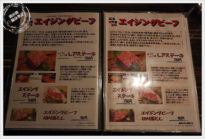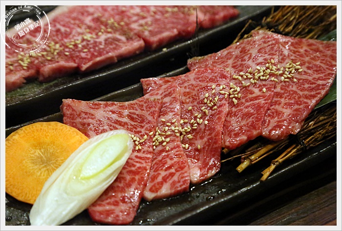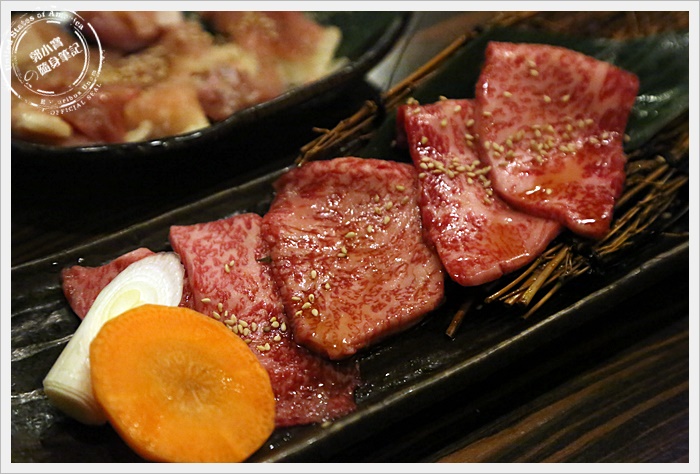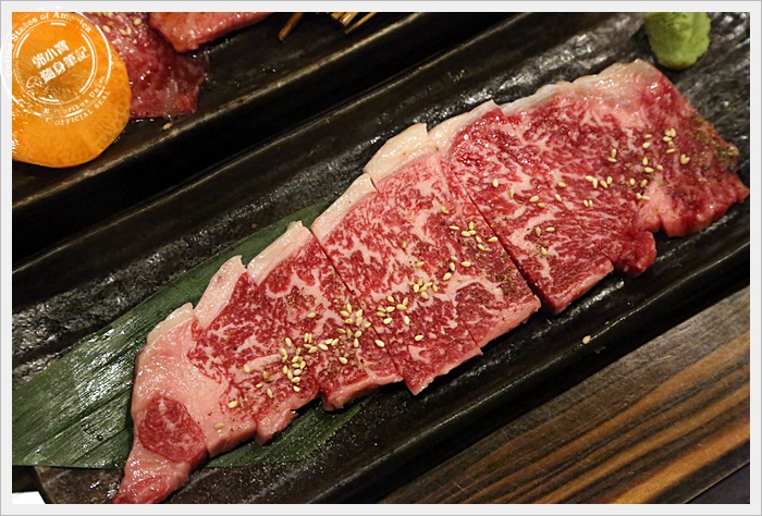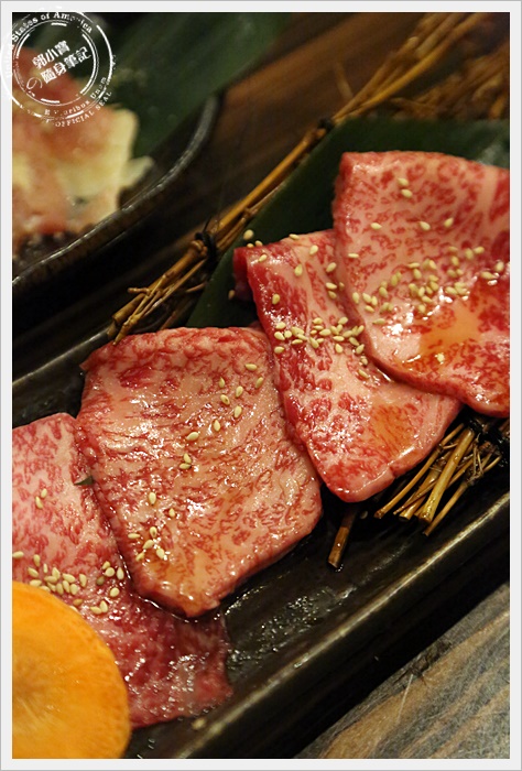 | 這一間最有名的就是熟成40天的和牛,看起來油花相當的漂亮,那向血管般分布的油花入爐烤過,入口那軟嫩程度實屬讓驚訝。 |