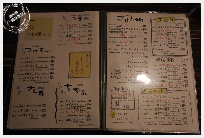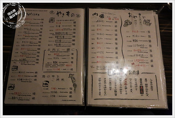 | 除了第一頁有照片以外,剩下的幾乎都是日文了,這時候只能有邊讀邊沒邊靠想像了,經過了一陣子的比手畫腳後,終於才點完我們的餐點,雖然語言不通,但是老闆還是跟開心的跟我們介紹很多,為了點牛舌,我還吐舌頭比給他看XD |