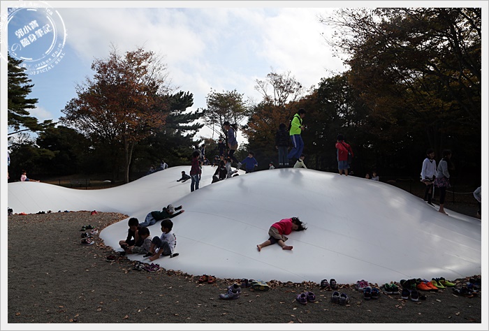 | 這邊有一個小朋友的森林遊樂區,很多家長都帶小朋友來這邊玩的不亦樂乎,當中有幾個白色大型彈跳床,全部的小朋友都在上面跳啊跳得好像很有趣,搞得我也好想下去跳,但是限定小朋友進入XD |
