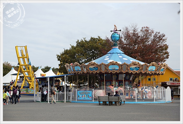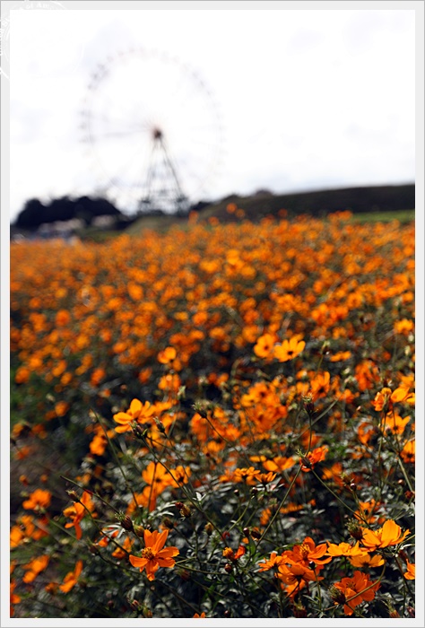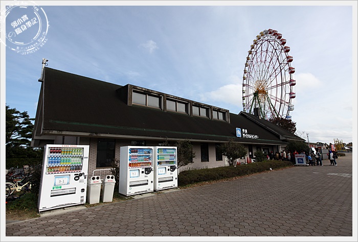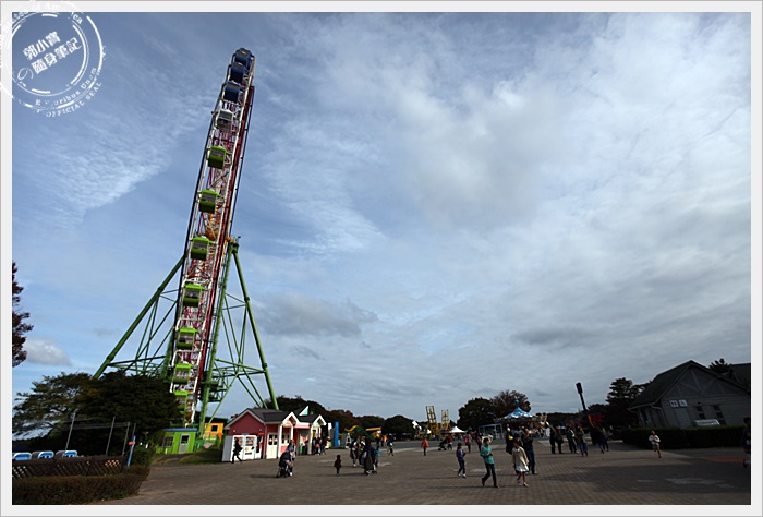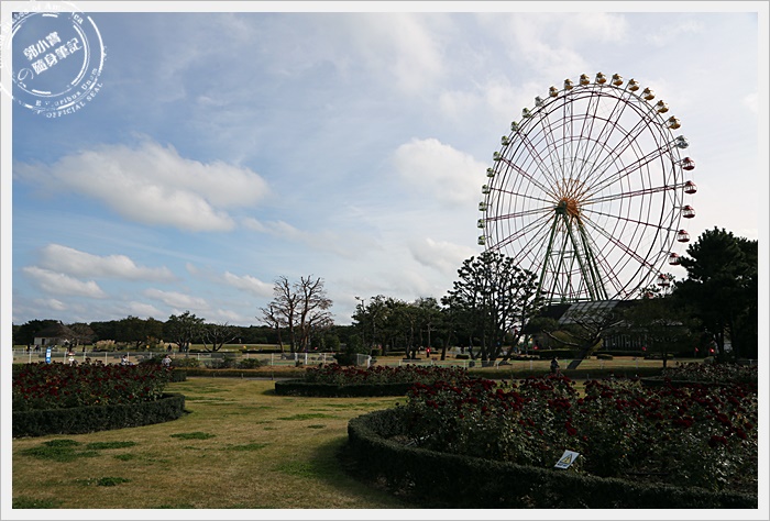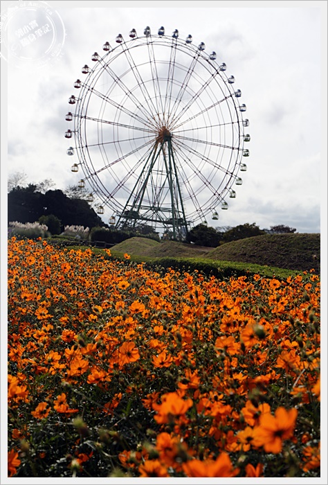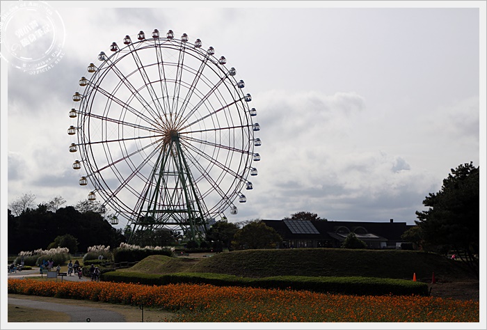 | 遠遠就可以看到遊樂區的摩天輪,幸好常陸海濱公園這個季節還有花田可以讓我們賞花,它們的賞花季基本上都是一大片的花田美不勝收的狀況。 |
