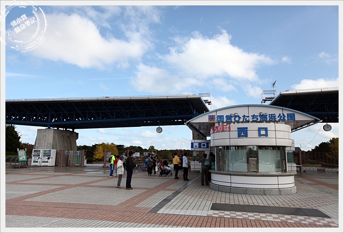 | 當天到達的時候天氣相當的好,常陸海濱公園有兩個出入口,一個是公園出入口,就是照片上這一個,另一個就是遊樂園出入口,其實我比較建議從遊樂園出入口進出,因為遊樂園那邊有再出租腳踏車,因為常陸海濱公園真的太大了,走路真的會走到死。 |