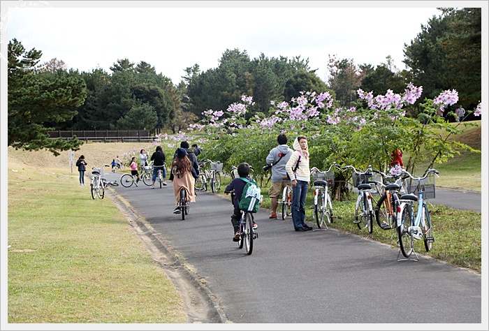 | 順著單車道騎就可以把常陸海濱公園的景點全部看完,喜歡的地方可以把腳踏車放好再下來步行拍照,沿路真的都很漂亮,其實就算是不是花季來也非常值得。 |