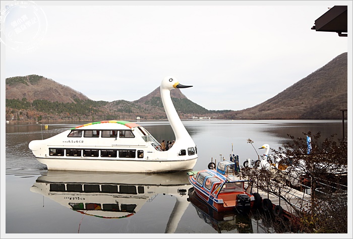 | 榛名湖算是高山湖,感覺挺幽靜的,還有天鵝船可以搭乘,但是這些都不適我們的目地,遊客並沒有很多,可能我們來的不是假日也有關係。 |  |