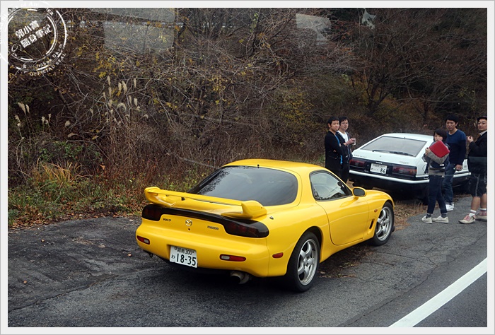 | 下山的時候還超幸運地看到了日本不知道是電視劇還是電影拍攝,發現了停在路邊的86,攝影組的人還滿多的,可惜我在公車上沒辦法下車觀看,不過可以在車上看到真實的86出現在這髮夾彎真的感覺到超開心的! |  |