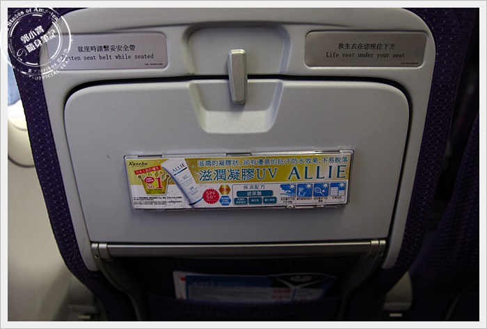 在硬體的部分個人覺得根本就是跟一般航空公司的內部裝潢是一模一樣的,至少我個人沒有感覺任何的不同,所以到這邊目前為止算是顛覆了我對廉航的刻板印象。 |