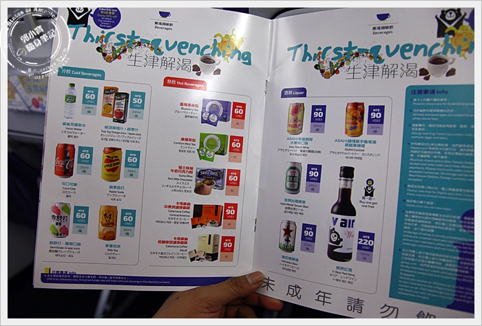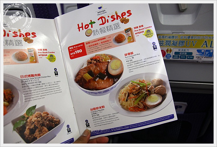 | 廉價航空幾乎都是沒有附餐點的,都是機上點餐,也可以在訂票的時候加購餐點,如果忘記訂購的話,也可以在機上直接點餐,餐點還滿豐富的,都是台灣代表性美食,價位已機上食物來說也不會很貴。 |