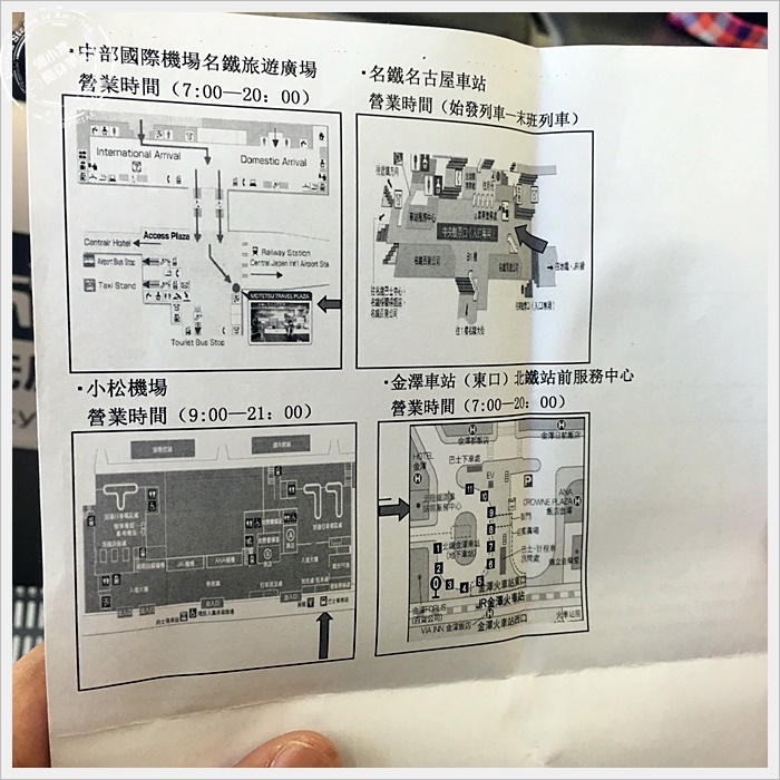 | 順便也把換票櫃台地圖印了下來,其實還滿好找的,就在中央服務台旁邊,名鐵入口旁就可以找到了。 |