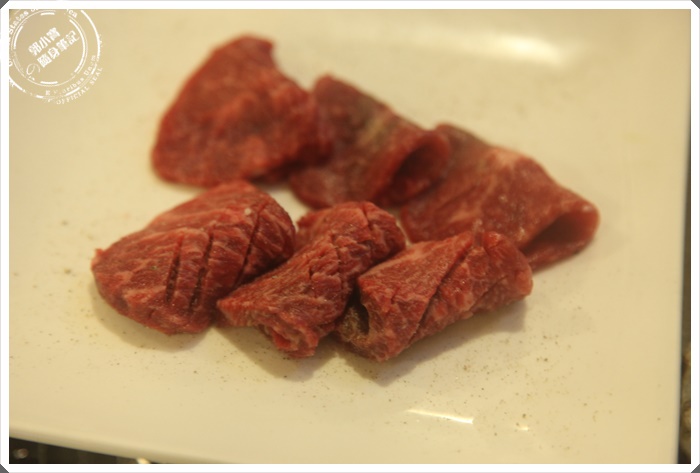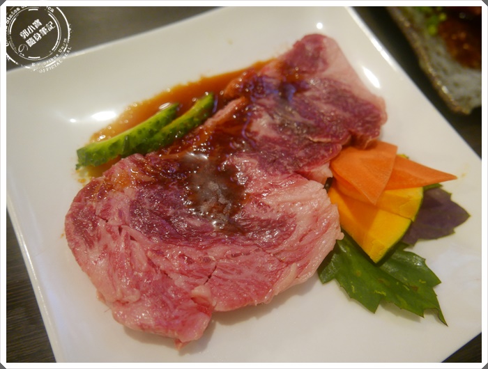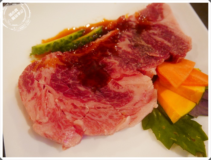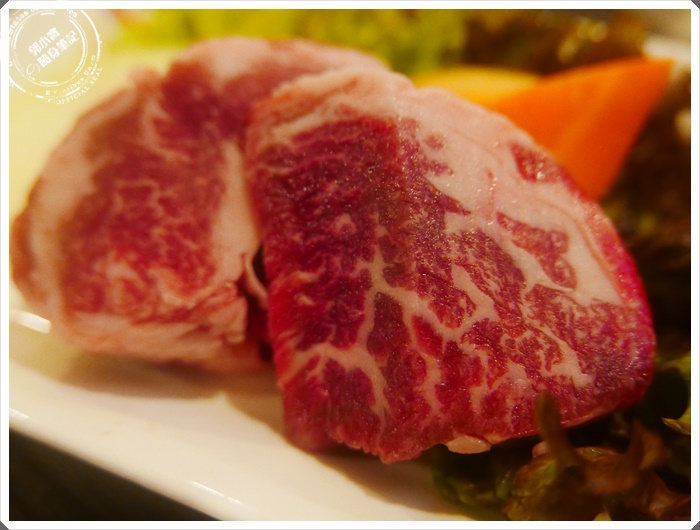 | 本來以為會帶筋,後來入口發現筋都已經去掉,其實也算很好吃,但是跟剛剛的沙朗心比起來真的有差異,油脂一樣豐富,但是就會有一點點膩的感覺,特選和牛真的油脂比較甘甜許多。 |