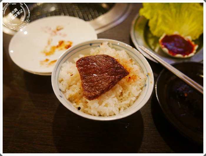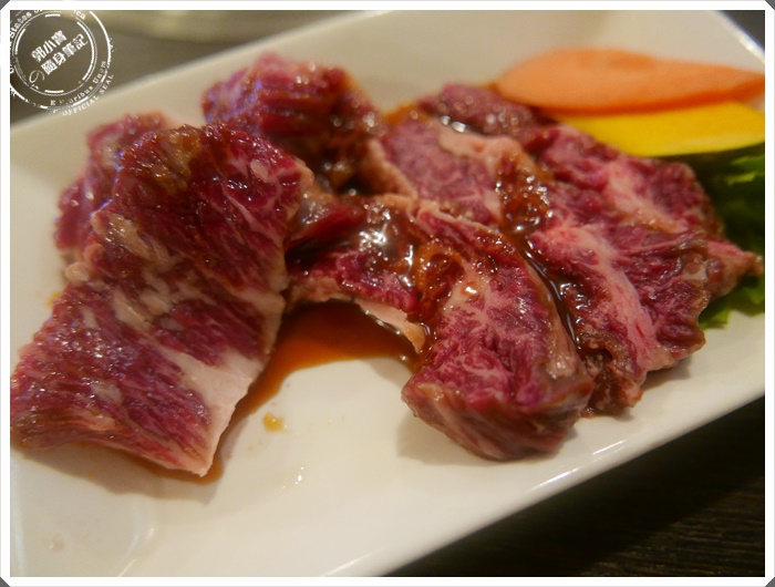 | 我個人真的認為它們家非常哭被,因為不管生肉油花多不多,每一塊肉烤起來都是油光滿肉的狀態阿,入口吃的到肉的纖維口感,但是還不會太難嚼口,血水跟油脂都很甜! |