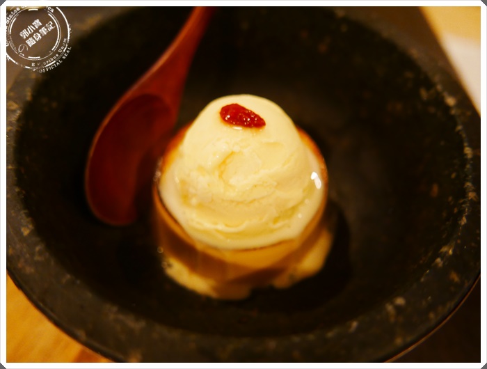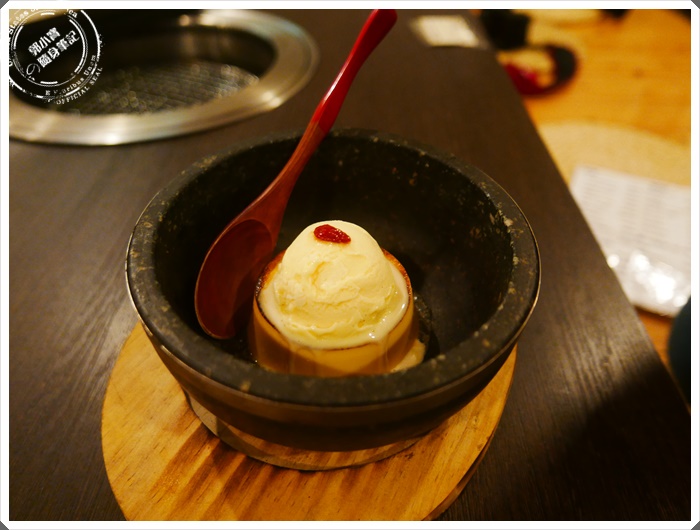 | 說真的我很難把這個甜點跟法式燉蛋聯想再一起,上面就香草冰淇淋下面是一個布丁,吃起來就很普通,來這裡還是專心在牛肉就好了XD |