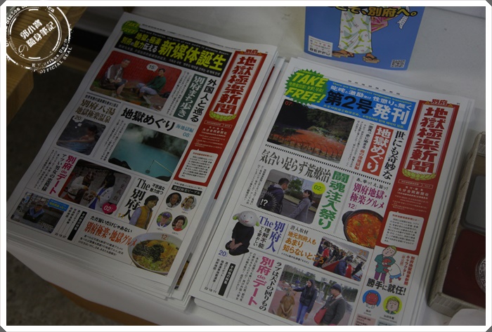 | 旁邊還有地方報紙,是免費索取的,感覺好可愛,報紙名稱叫地獄極樂新聞,哈哈 |