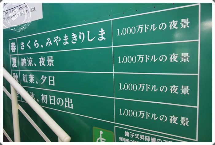 | 樓梯牆壁上訴說著一年四季的風景都是屬於千萬級的美景,說真的是真的一年四季都很美麗的一個地方,話說我在日本坐的纜車數一數也真的超多的了,幾乎大部分看到有纜車就會衝去坐。 |