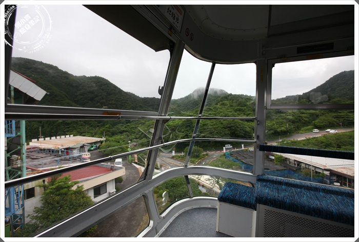 | 鶴見岳高山纜車兩部纜車分別是藍色跟粉紅色,且這纜車創下很多日本第一,他可是日本最大的載客纜車,還有坡道陡度最陡的纜車等等紀錄保持纜車,聽著解說員訴說一整個感覺今天來這邊就完全來對了啊!!! |