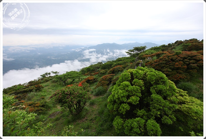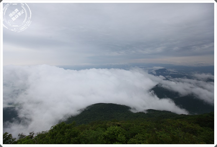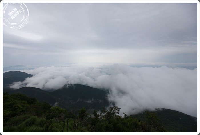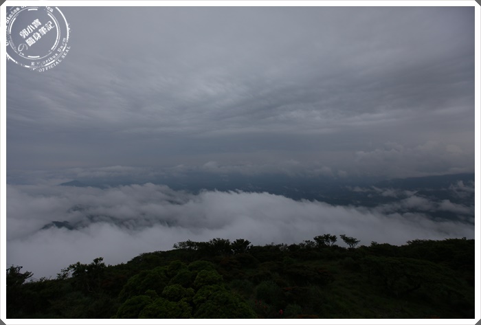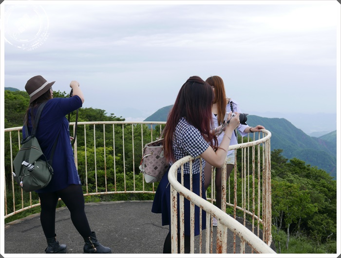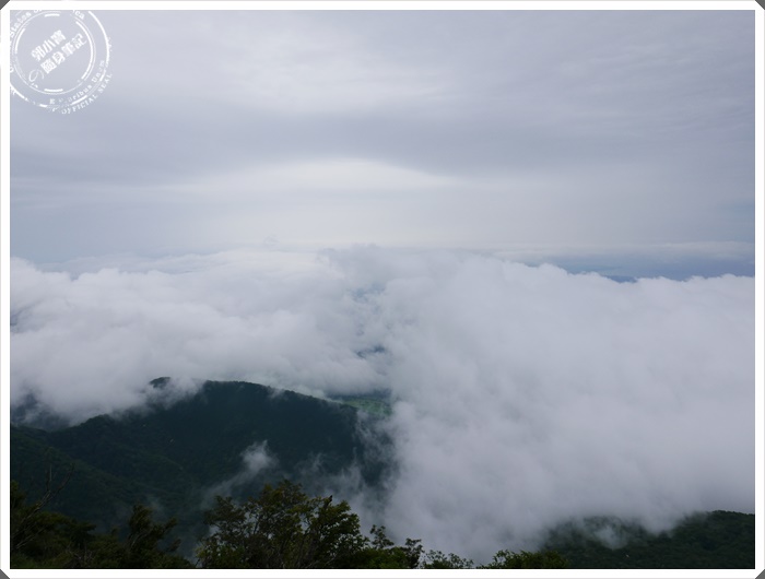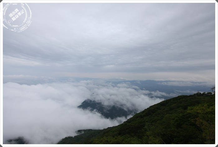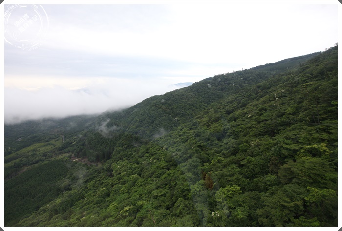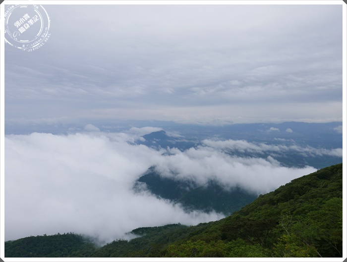 | 望下山下的美景真的是每到令人屏息,今天的天氣讓這海拔高度卡在兩層雲層的中間,找好角度還是可以看到些微的別府市,只是雲海流動的速度太快,時見時不見,整個感覺就好美。 |
