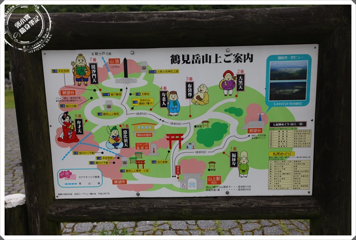 | 一旁的鶴見岳高山地圖,這邊除了有兩個山上展望台以外,還有七福神,要繞一圈頗需要一點時間。 |