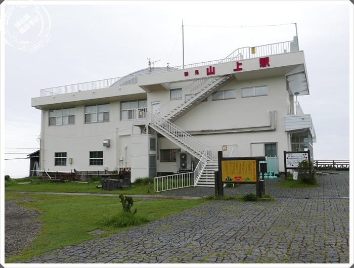 | 爬上小階梯就可以看到鶴見岳高山纜車山下站了,這天下點小雨,站務人員提早告訴我們可能沒辦法看到別府市區的景色,但是可以看到雲海,其實可以看到雲海我更開心,因為可以看到別府市區在很多地方都可以看到,但是可以看到大面積的雲海流動更難得好嘛!! |