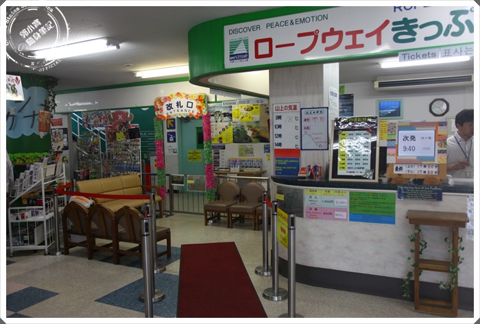 | 一進門就可以看到售票口,旁邊就是去搭乘纜車的地方,這邊的工作人員雖然不懂中文,但是對遊客們都相當的親切,尤其北九州的人大部分都對台灣人頗有好感,好幾次跟日本居民聊天,一知道我們台灣來的當場都變得很熱情。 |