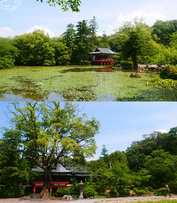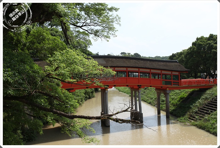 | 宇佐神宮的腹地大概跟一個城一樣大了,外層還有一圈護城河真是壯觀,因為前幾天都下雨,所以河水有點濁,聽說平常的時候非常的清澈。 |