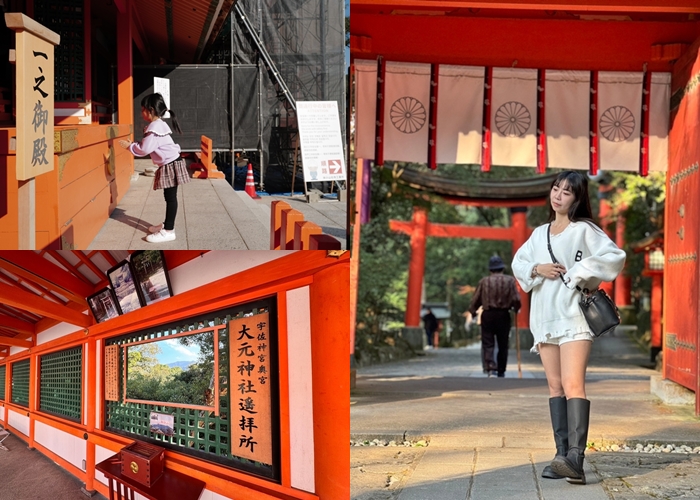 | 第一眼看到八幡宮的總本社感覺就是也太雄偉了吧,不愧是宇佐神宮,全日本4萬4千間八幡宮的總本社,太有氣勢了,加上當天的天氣很好,簡直是第一眼就愛上這美麗又雄偉的宇佐神宮,當天即使是平日,但是來參拜的人潮還是一批接著一批,宇佐神宮參拜的很多習俗跟一般日本神社不一樣,例如拍掌要拍四下而不是三下等都是為了更加敬重這宇佐神宮崇高的地位。 |