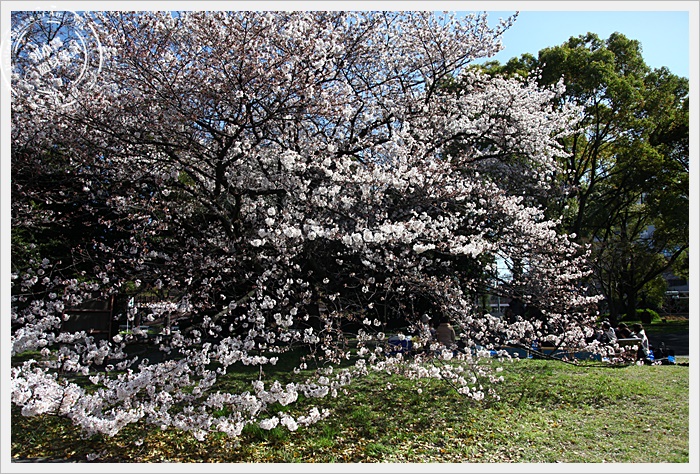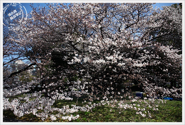 | 櫻花盛開的名古屋城也很美,這邊的老櫻花樹也非常多,沿路走來都可以欣賞到美麗的櫻花,很多日本民眾也都是選擇來這邊野餐賞花。 |