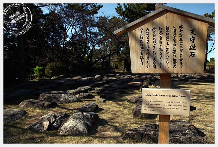 | 天守閣底下的大石也讓人覺得很壯觀,幾百年前這些人到底如何把這重達數噸的大石頭一塊一塊的堆疊上去的。 |