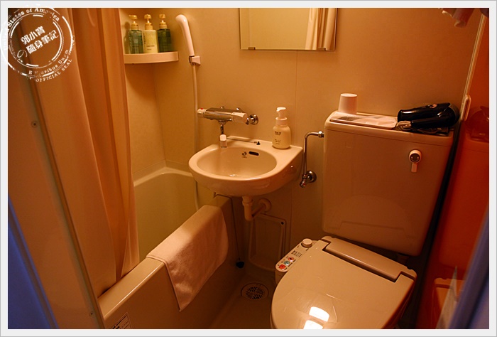 | 廁所有浴缸,飯店沒有提供浴場,免治馬桶蓋,算是小而美的浴室。 |