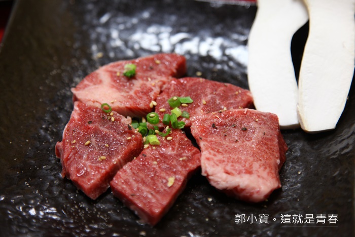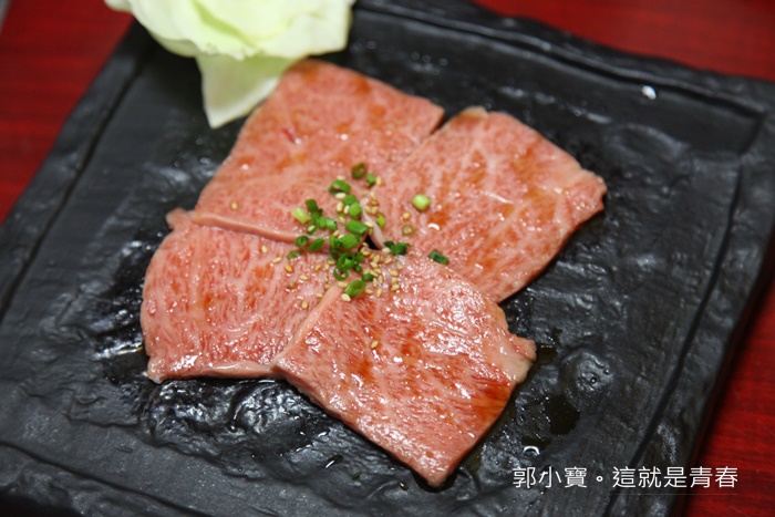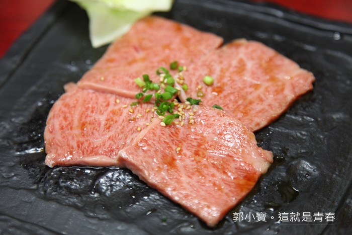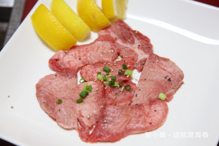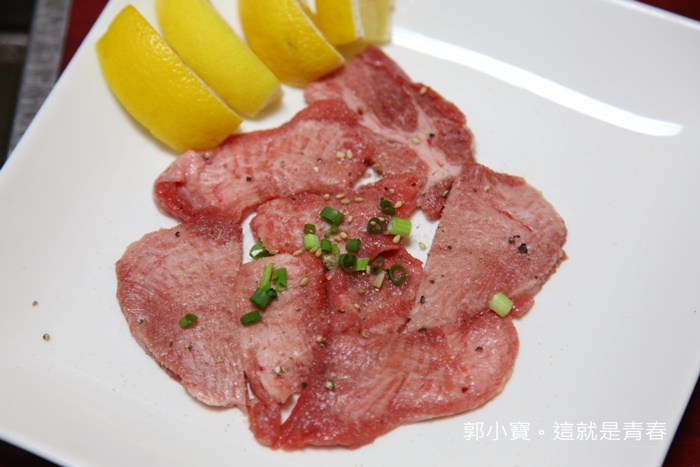 | 來到燒肉店第一個點的當然就是牛舌了,我個人超愛吃牛舌的,顏色看起來比較淡的感覺,不知道吃起來的感覺怎樣,搞得我好緊張,因為我真的吃了三家後快對宮崎牛沒有甚麼信心了。 |