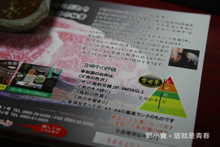 | 想更了解宮崎牛的朋友可就要好好的研究一下它們的餐墊紙了。 |