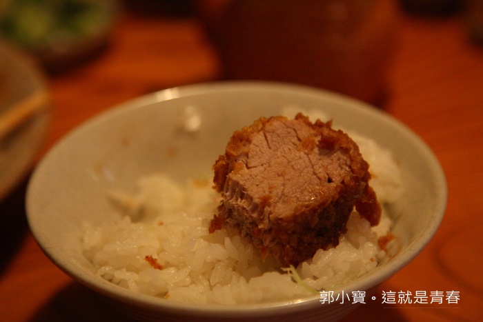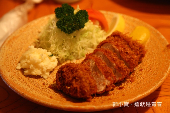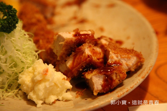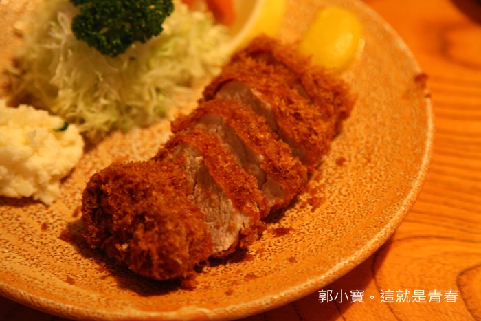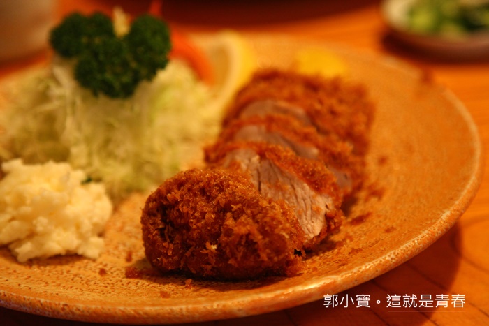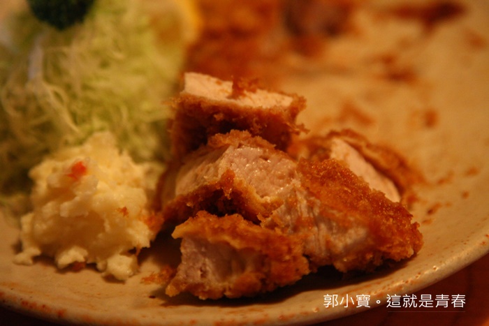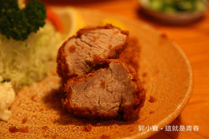 豬排一上來的時候香氣四溢,第一次拍找拍到快受不了,因為她的名氣真的太響亮,所以這次幾乎是飛快的速度拍完就馬上吃了,麵衣非常的薄,跟一般日本炸物的麵衣不一樣,日本炸物通常麵衣比較厚,俗稱過三關,但是他們的麵衣只有薄薄的一層,雖然沒有卡茲的快感,但是那微酥的口感還是不錯。
