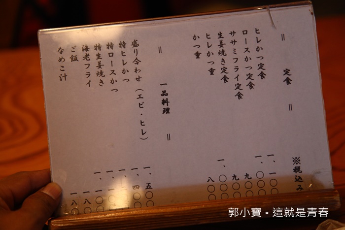 | 豬排有定食跟丼兩種,豬肉的部位也有不同的選擇,也有海老可以選擇,但是來這邊就是要吃豬排的啊,看了一下菜單這邊的價位真的超無敵的,幾乎都落在千元日幣左右,揪大心ㄟ! |