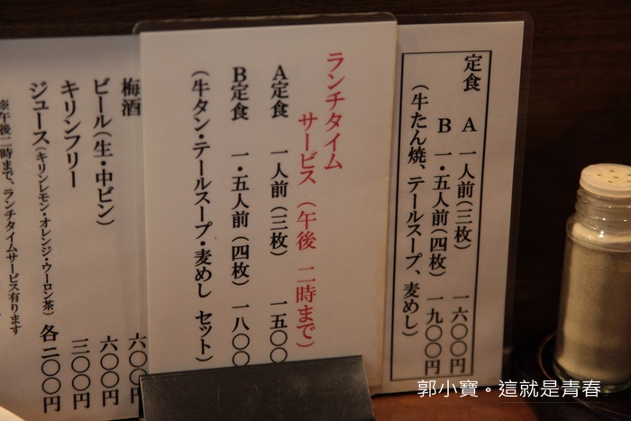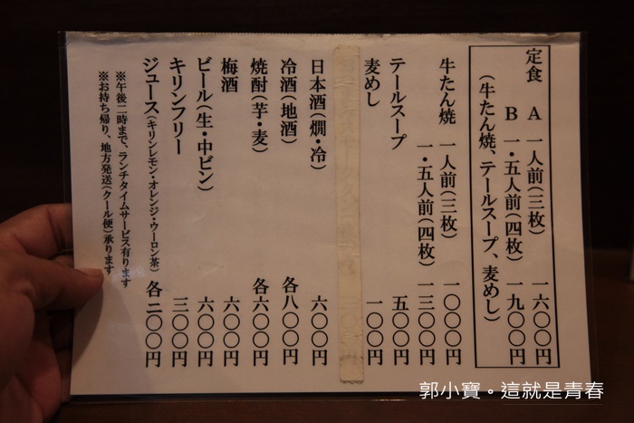 | 菜單相當的簡單,跟萃萃一樣只單純做炭燒牛舌一樣產品而已。 |