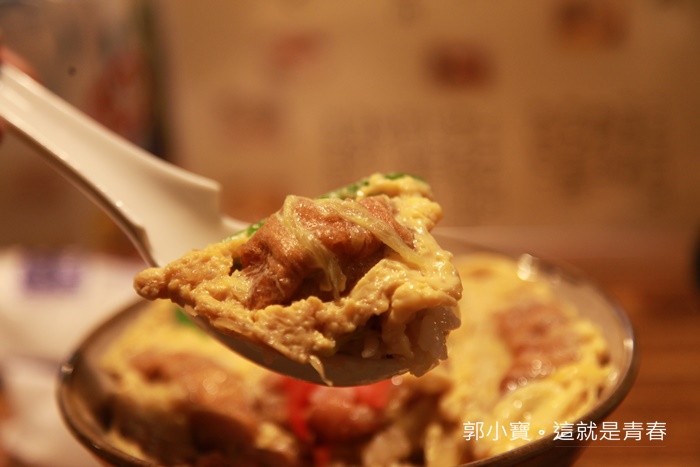 | 白飯淋上醬汁在放上油麩跟蛋花,一口吃下的感覺就是蛋香濃郁,醬汁偏甜卻不膩口,油麩的口感有點像式浸泡過的油條相當美味,整個吃起來非常順口,感覺是小朋友會喜歡的口味,好吃又特別,我順便就把這一碗嗑光了。 |