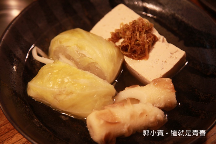 | 我們點了高麗菜卷跟竹崙還有豆腐,豆腐還特地放上了柴魚醃製物,特別! |