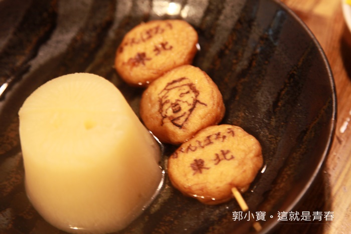 | 白蘿蔔燉煮的口感正剛好,綿口但是還吃的到纖維,我還滿喜歡的,一旁的腐卷還可以看到東北加油的字樣。 |