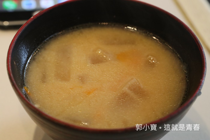 | 味噌湯偏甜,滿符合台灣人的味道,其他豬排名店搭配的味噌湯都是偏苦的味噌,各有特色。 |