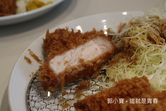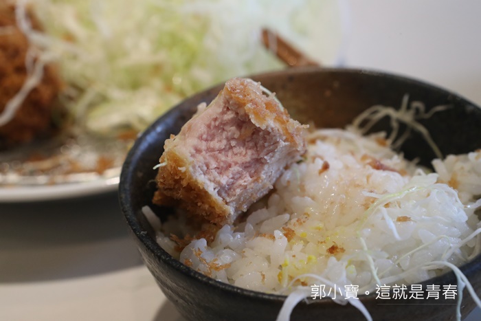 一口咬下炸豬排都快流出眼淚了,那酥脆的麵衣發出劈哩啪啦的脆度,微刺的麵衣搭配嫩口又多汁的豬肉,豬肉有股特別的香氣,咀嚼中一點都不會覺得肉過於老,因為豬排都切的很厚,所以一口咬下的滿足爽快感也很破表,嫩口以外越嚼越香,超滿意的啊!!!!!
