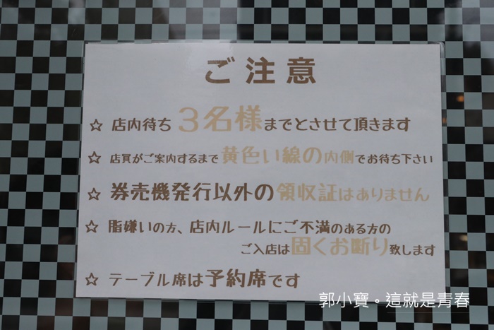 | 外面的告示牌貼著店內等待的人數最多只能三個人,還有寫了一些老闆的規矩,如果不能接受就不要進入等的告示。 |