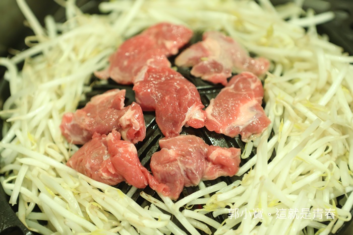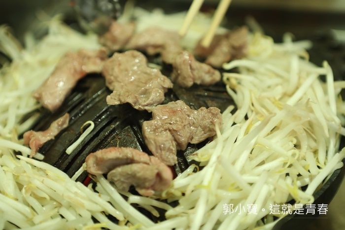 | 剛開始燒烤的時候工作人員會豪邁的撒上豆芽菜,我在台灣是不喜歡吃豆芽菜的,但是日本的豆芽菜沒有惱人的味道,所以我還滿喜歡的,加上燒烤後的肉汁與醬汁跟豆芽菜混合後,滋味頗為不錯。 |