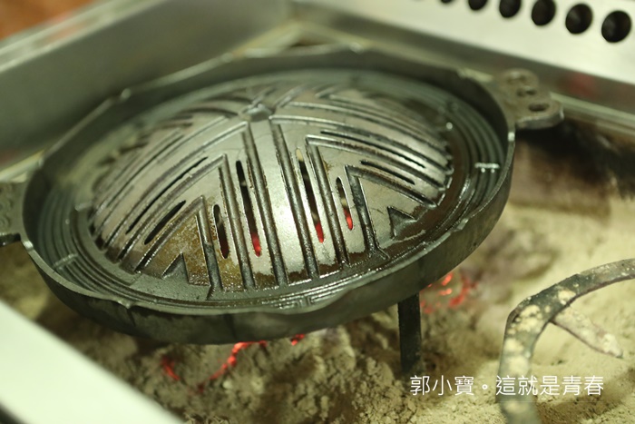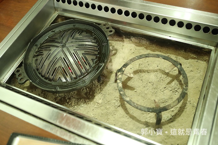 除了傳統的蒙古鐵盤以外,還有另一個圓鐵架放置鐵網進行其他食材的燒烤。