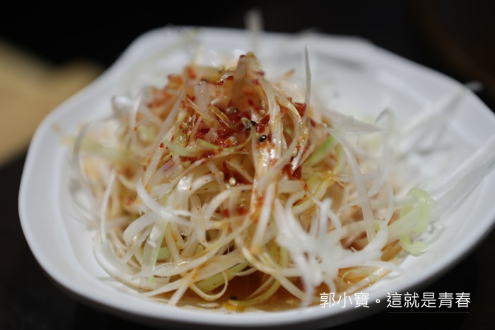 | 之後要上來一盤細蔥,光是到這裡我都覺得不推薦大家來這裡不行了,真的很誇張的一家韓式燒肉店,之前也有去過很多韓式燒肉店,也有送小菜,但從來沒有送到那麼誇張過的。 |