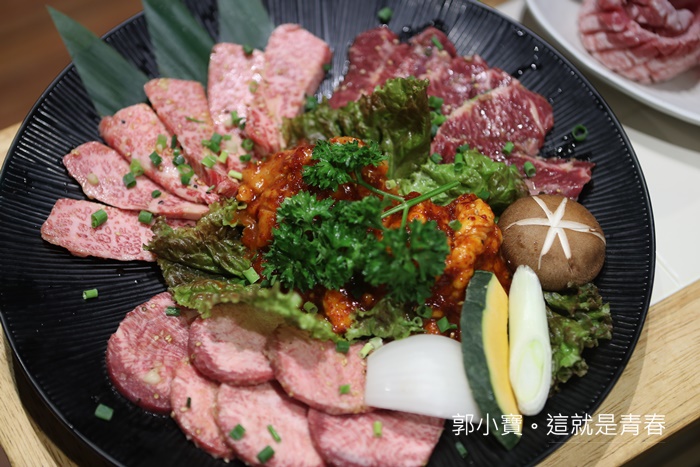 盛合裡面種共有四樣食材,有我最喜歡的牛舌以外,還有雪花跟沙朗兩種部位的肉,再加上內臟。 |