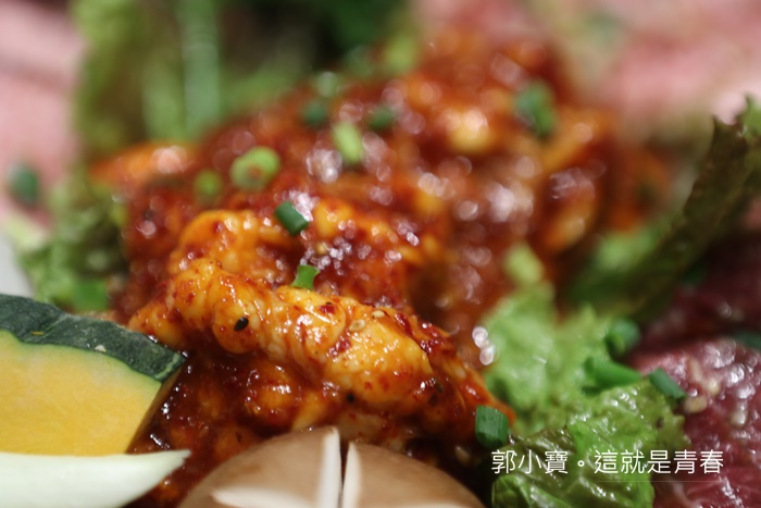 吃起來的帶點脆度的口感真的太迷人了,辣味噌醬的味道相當的濃郁,吃起來真的太迷人了,將雪花牛還有內臟包在生菜一起食用真的太美味了。