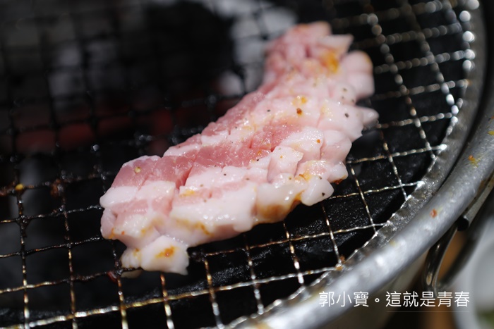 立馬就把這五花肉放上烤爐,因為五花肉都是油脂的關係,當場就發爐了,大火燒不盡,烤五花肉的時候盡可能要注意一點,不然火真的很旺,且建議不要一開始就烤五花肉,等木炭火小一點再烤五花肉會比較好一點,但是看起來真的很像是烤花枝XD