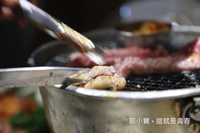 | 本以為小菜都上完了,結果後面又上來熱泡菜,簡直太瘋狂了,真的是小菜就可以吃到一個無限保的燒肉店,熱泡菜放在烤爐上烤,熱熱的吃起來別有一番風味,吃完一樣可以補充。 |