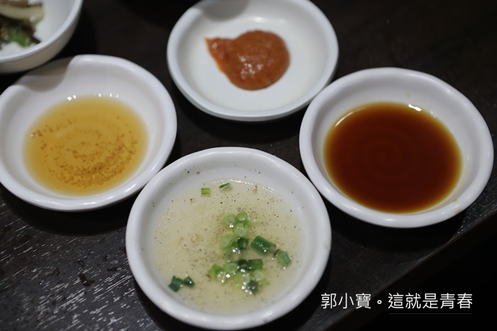 | 連醬料也送上來了好幾碟,感覺一整個相當的歡樂,看到這源源不絕一直送上來的小碟子,心理面一直想到底還有多少碟,光是看到這裡就知道難怪這家店可以那麼受到歡迎。 |