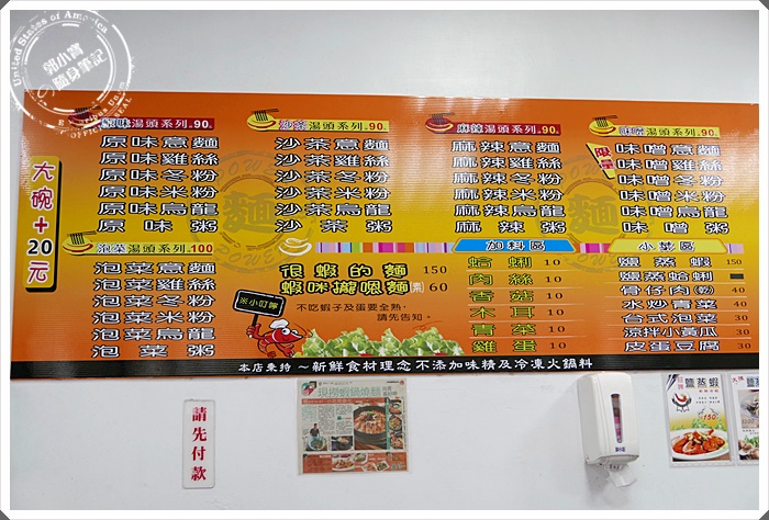 | 口味湯頭很多,有原味、沙茶、泡菜、麻辣還有少見的味增口味,有提供蝦子很多的鍋燒麵,也有什麼都不加的素食鍋燒麵XDDD,後來寶妹才知道原來他們家的小菜竟然頗有名的可惜沒有點到。 |