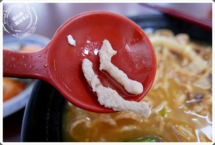 | 果真沒有火鍋料的使用,裏頭有蛋、青菜、還有放許多的黑木耳絲~尤其是肉絲超大條的,是肉條吧不是肉絲XDDD很新鮮的豬肉,寶妹一般不太愛吃鍋燒麵中的肉絲,今天可是拼命地找,因為好嫩口阿 |