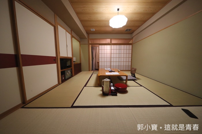 房間還滿大的,提供給我們的是主要的雙人房型,因為日本旅館基本上都是算人頭的,基本上進來的時候都還是完整著狀態,飯店會趁妳去洗溫泉或是吃飯的時候進來舖床。